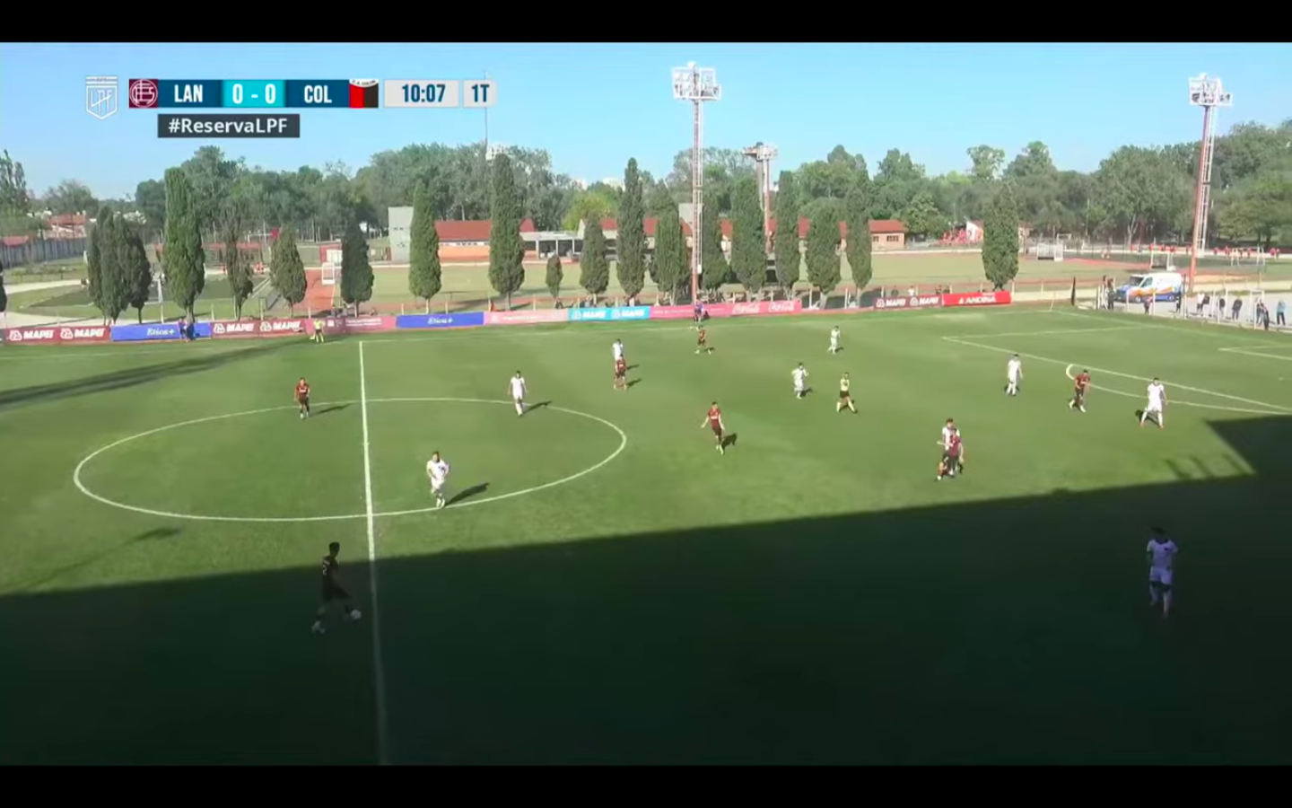 Lanus Reserva implement a high-press with man-orientated marking responsibilities as they are fluid with their pressing shapes and the positioning of their players in the press. They look to force turnovers to regain possession in the opposition half as well as forcing long balls to regain possession near the half-way line to start attacking moves. Their most frequent pressing shape is a diamond 4-4-2 pressing shape while they will also regularly employ a 4-2-3-1 and nominally a 4-3-3 pressing shape. Their pressing shape is tailored to specific triggers and situations as well as the positioning of the opposition to create coverage and be able to properly man-mark opposition players in order to implement a more effective high-press.